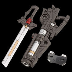 ■Various additional weapons can be placed onto the hard points on either upper side of the tactical hangar. The Plasma Sword (Samurai Master Sword) can be placed on the lower holder.