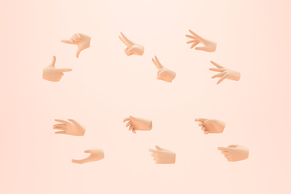 8. 6 Types of Hand Parts (Open (Elegant)/Holding (Sword)/Holding (Narrow)/Supporting/V-Sign/Pointing B) × Left and Right Each