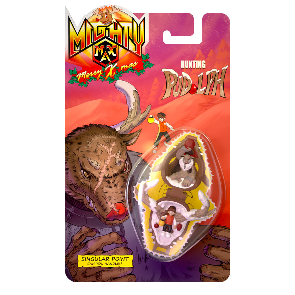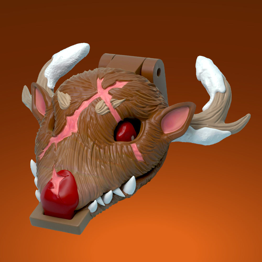 Rudolph features highly realistic fur texture, crafted specifically to reflect the tactile qualities of long-haired creatures. His antlers are sculpted with patchy snow build-up, matching the wintry setting revealed once the scene is opened.