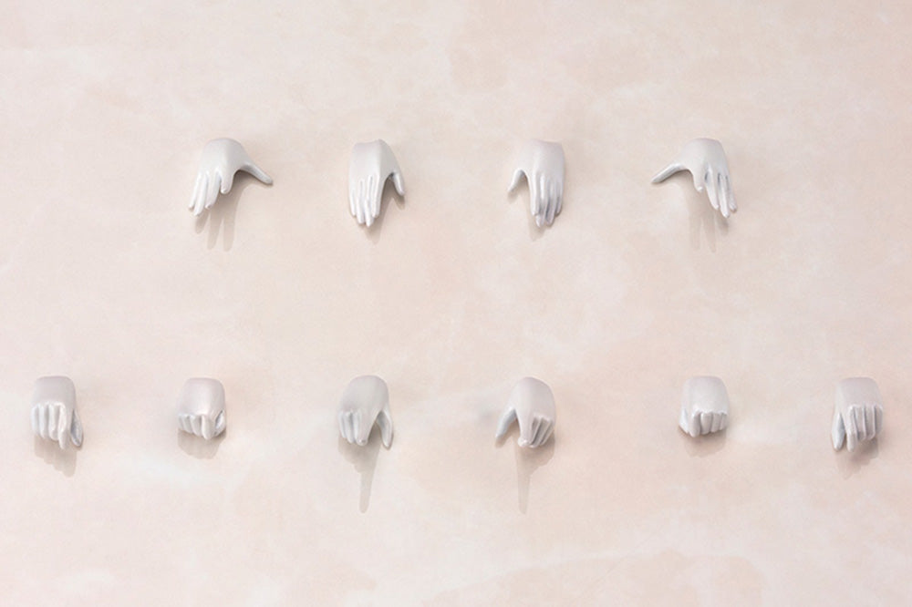 ・Includes five sets of PVC hand parts. The hand parts, including the joints, are compatible with the other hand parts within the Frame Arms Girl series.