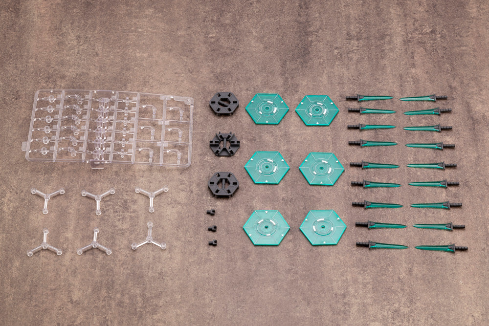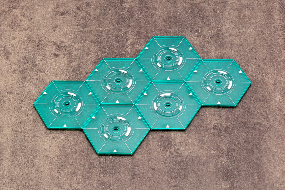 ■ The Magia Field hexagonal summoning plates are made with clear green plastic and have a 3mm connection point in the middle, allowing them to be used with a variety of parts from other kits, such as the HEXA GEAR MINI FLYING BASE.