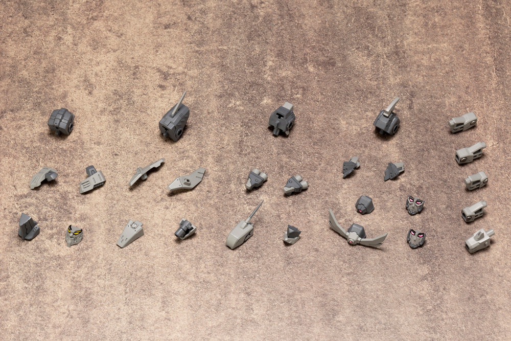 This kit includes four head parts that can be taken apart and customized, and several Frame Arms neck joints that allow users to create over 100 different types of customized heads for their plastic model kits. Use your preferred parts for flexible customization.