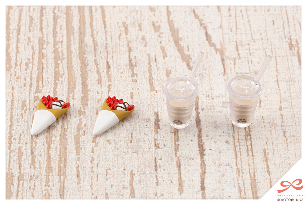 The AFTER SCHOOL CAFE TABLE set includes a round table, chairs, drinks, and crepes. The number of chairs, drinks, and crepes is enough for two people so users can display various characters enjoying each other’s company.