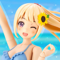 The kit includes five face parts, including a cartoonish face, which was voted most popular in a survey conducted by Kotobukiya.
