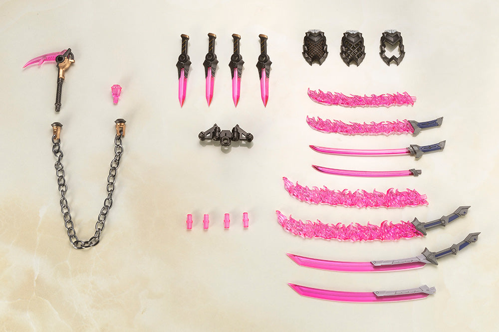 ・A newly-sculpted kusarigama (chain-sickle) and short knives are included.