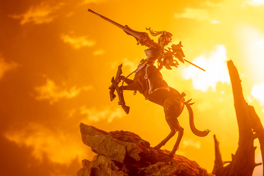 ・There are three ball joint connections, one in the hip of the human body and two in the lower torso of the horse body, for flexible movement and freedom of posing. In addition to wielding weapons, the model can also pull off horse-like poses such as lying down and sitting.