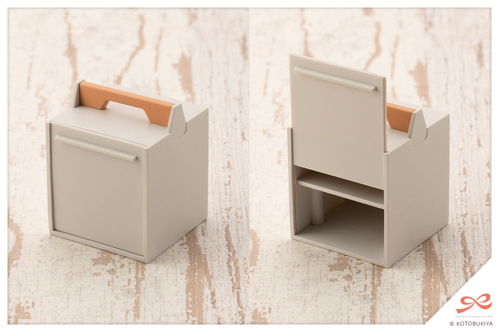 The lunch box is wrapped in a cloth and can be held by pinching hand parts. The bottom has a 3mm connection point and can be held with 3mm open hand parts. The slippers can be used with the ankle parts of Seira with her shoes off, allowing you to recreate scenes of her cooking in the kitchen and enjoy a variety of other situations.