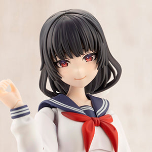The legs are sculpted with folded-down white school socks, giving her a somewhat retro and sophisticated look. The kit also includes the three original skirts from SOUSAISHOJOTEIEN: Standard, flowing, and sitting with knees to chest. Parts can be swapped out to pose her standing elegantly or sitting down.