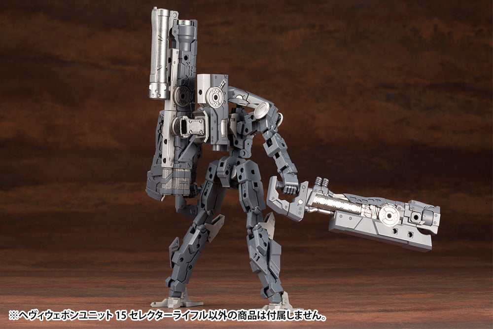 The 15th installment of the HEAVY WEAPON UNIT series features the Selector Rifle, a large-scale weapon that gives users the freedom to select the barrel of the rifle for different purposes.