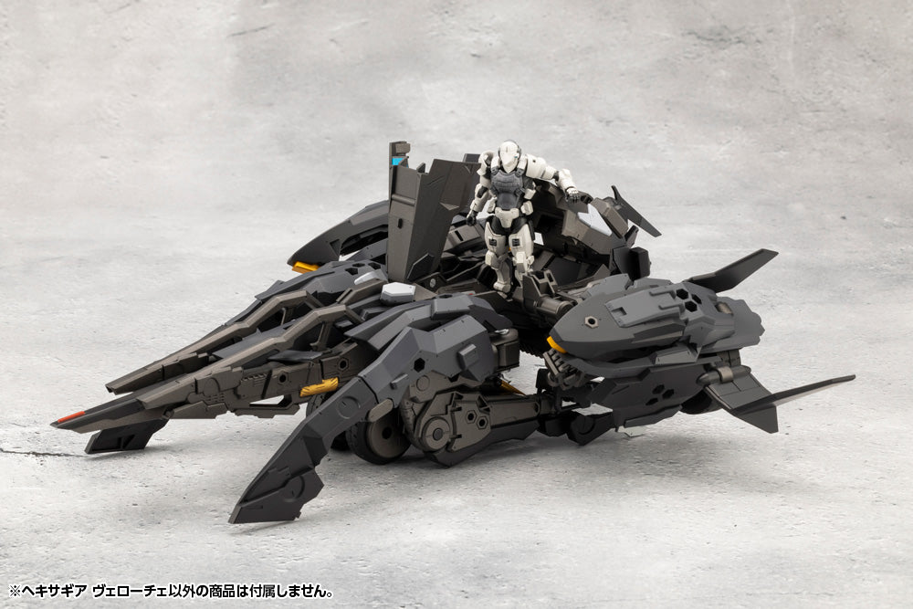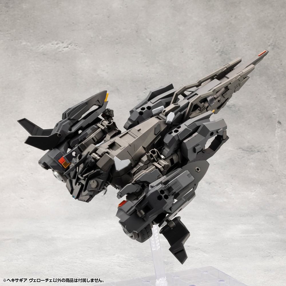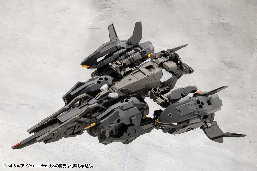 An interceptor HEXA GEAR that can transform between three forms, humanoid, vehicle and flying! By removing the outer armor, the unit can also be used as a sleek custom base model. In addition to the series' renowned customizability, VELOCE also boasts a sturdy, stylish design that can achieve dynamic poses!