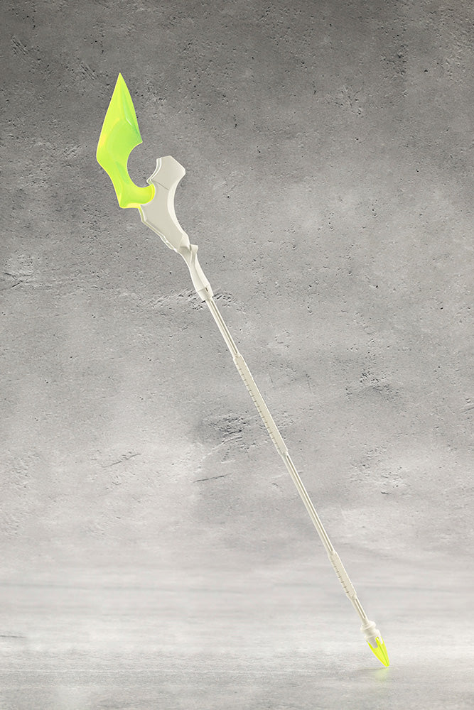 The blade is made with clear plastic and can be replaced to change it from its base Curse Reaper (scythe) form to the Magic Staff (staff) form.
