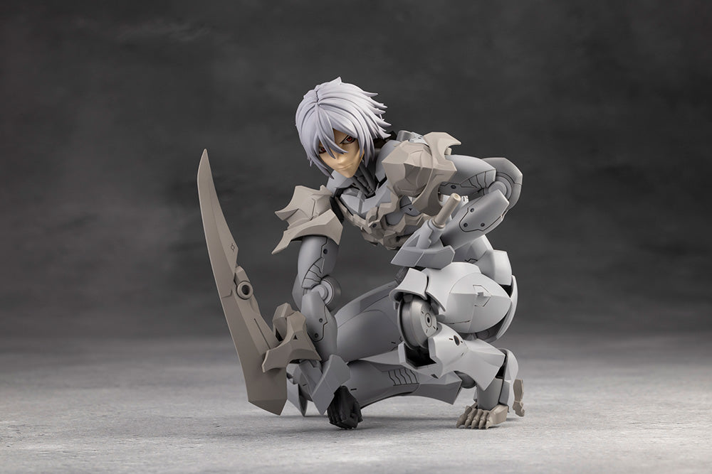 The knee joint, with a new shin articulation, is comprised of a single layer of joints and can be bent inward enough to allow the model to sit in seiza, with its legs folded underneath.