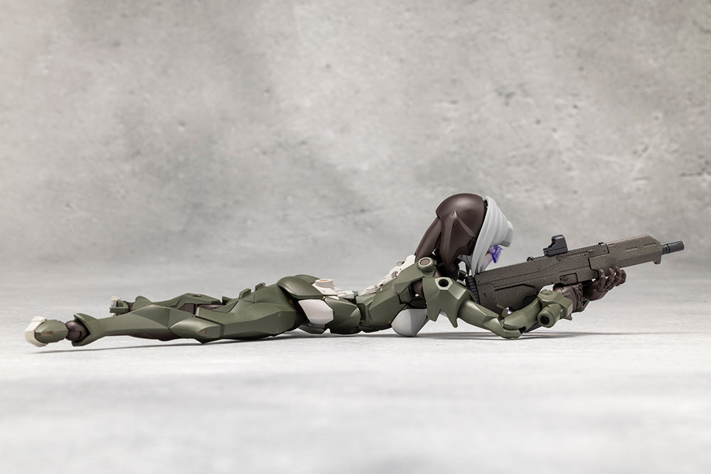 The model can make a variety of poses using the included rifle, such as prone, kneeling, sitting, and standing.