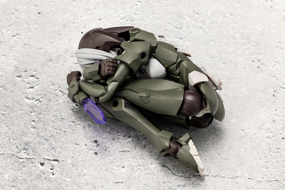 The wrists are designed to bend inwards almost 180 degrees which allow the hard point to be brought forward. A combat knife modeled in clear purple can be attached to the left arm, and makes for the perfect accessory for CQC or military-style action poses.