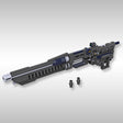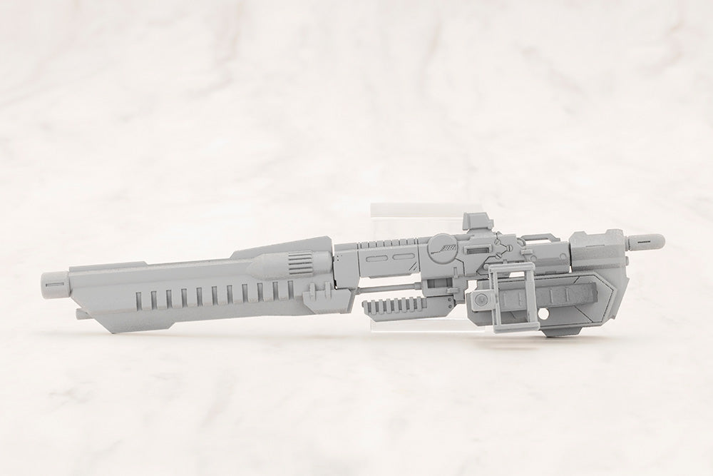 ■ The feature of this model is that it consists of four units: a long launcher barrel, a receiver, an energy condenser, and a stock. The units can be combined into a large, long launcher and can also be equipped onto the arms and/or back of a model using the included grips and supporting arms.