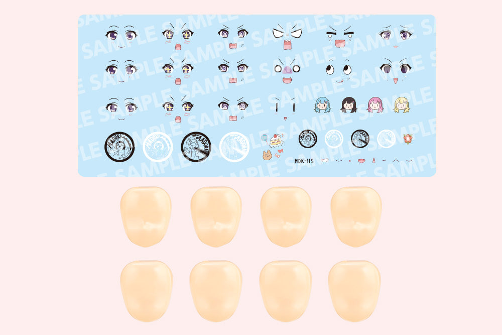 CUSTOMIZED FACE & DECAL SET Vol. 5 [DESIGNED BY RAGUHONOERIKA FOR MADOKA YUKI A] is a set of two types of newly sculpted unpainted face parts for customization and newly designed expression decals. This set includes decals based on Madoka's expressions seen in illustrator Ragho's popular four-panel SOUSAISHOJOTEIEN comics posted regularly on the official SOUSAISHOJOTEIEN X (formerly Twitter). The decals give Madoka Yuki, Touou High School's most innocent and happy-go-lucky girl, a massive power-up! There are even decals to recreate the popular Sousai Kaiju Madolla—a kaiju version of Madoka that has made a couple of appearances when Madoka is in rage that summer break is about to end. Give it a try!