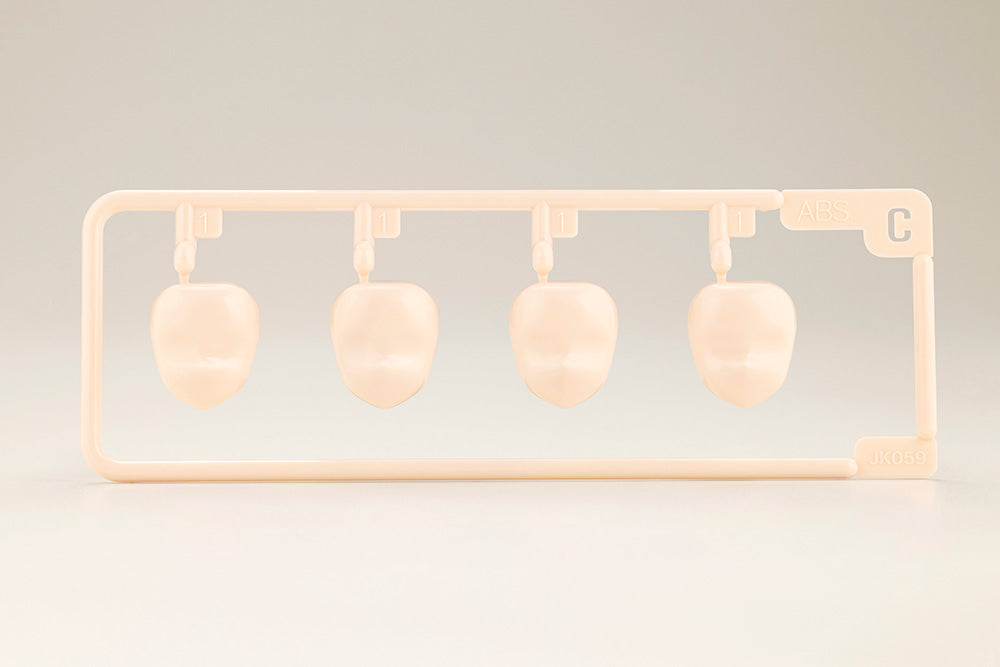 Unpainted Face Parts C does not include sculpted eyes and mouths like previous character model kits, allowing for expression decals to be used for a variety of customizations.