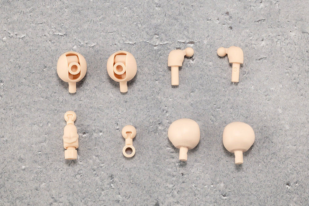 It also includes two types of neck ball joints: φ5mm (compatible with Megalomaria, Sousai Shojo Teien, Arcanadea, and Frame Arms Girl) and φ6mm (compatible with Megami Device).