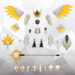 White Eagle is a set that combines the bird themed exarmor units such as the wings and beak, the Japanese themed fan and staff, and the expansion skin parts that can be attached to Sousai Shojo Teien models.