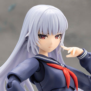 Using joints and features such as extendable shoulders, a chest and stomach that can twist in all directions, an adjustable skirt, and double-jointed elbows and knees, dynamic action poses can be created, like standing firm with a sword gripped with both hands, unsheathing the sword, and kneeling.
