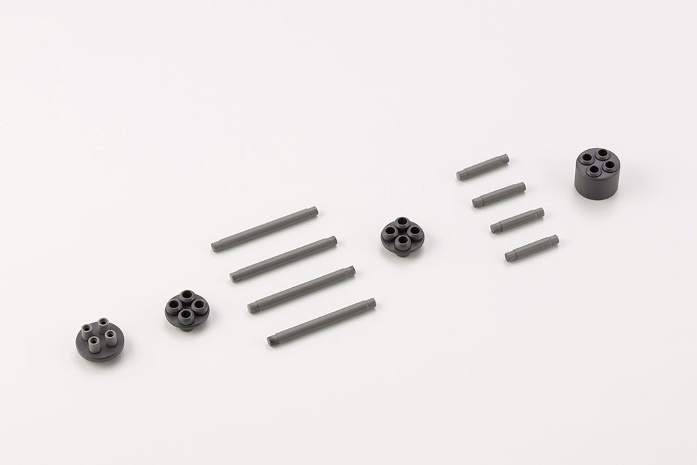 ■ 3mm connection joints are included across the unit, including on the barrel, allowing for disassembly and customization. The Gatling gun can be reconfigured to have a short barrel.