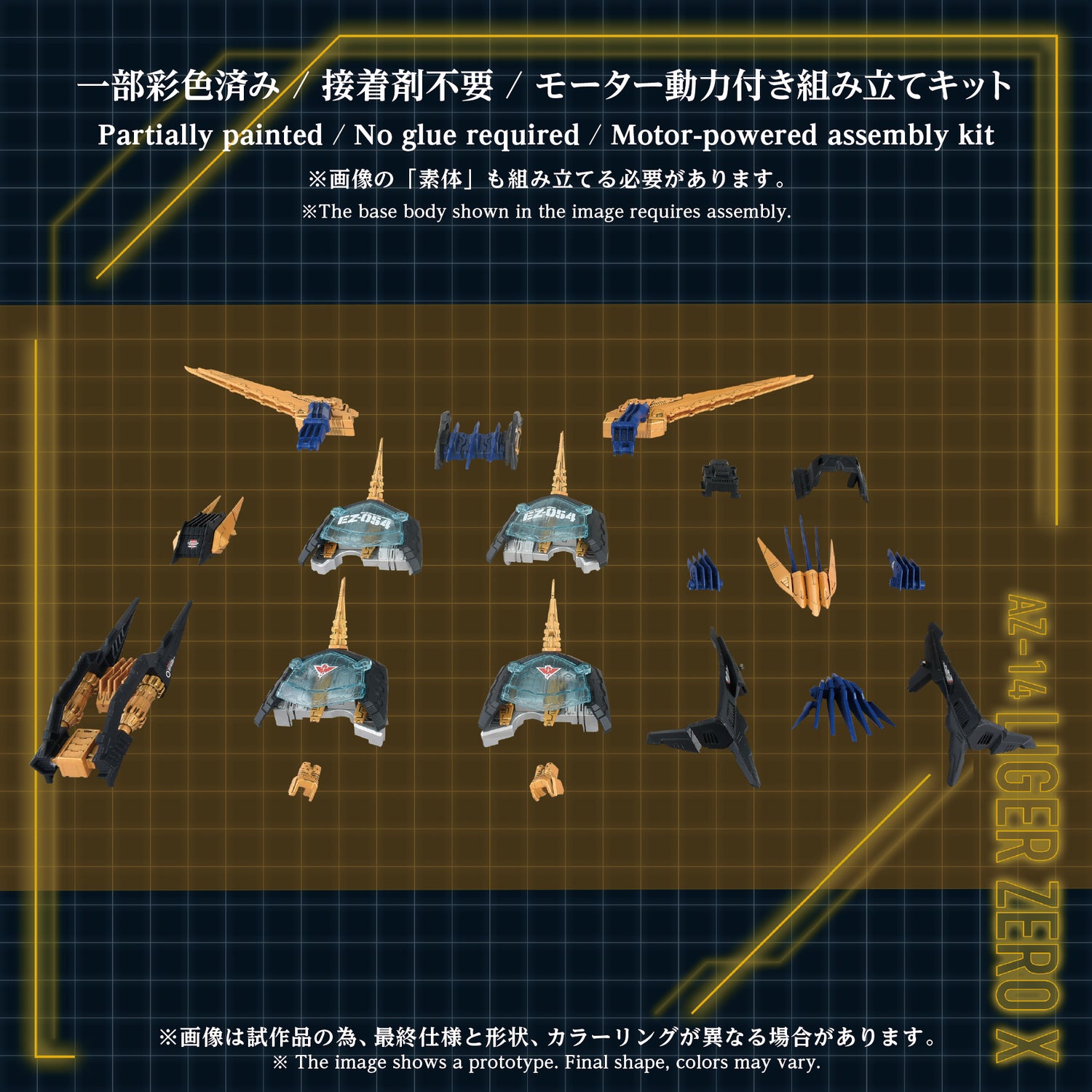 This product is a 1/72 scale assembly kit. This product contains only the unit (parts) required to recreate Liger Zero X when combined with an AZ series Liger Zero (base unit), such as the AZ-02EX2 Liger Zero Imperial Specification (sold separately) or the AZ-02 Liger Zero (sold separately). When equipped, various parts such as the shoulder covers, fins, drum capacitors, earth unit, and the back-mounted electro-driver are manually poseable. Includes a 1/72 scale unpainted pilot figure of a standard soldier, compatible with the cockpit of the Liger Zero (sold separately).