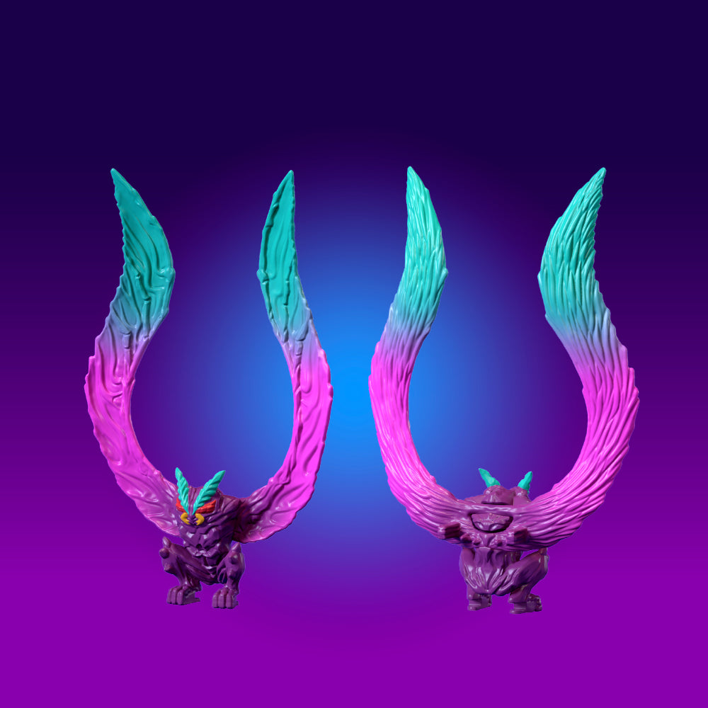 Purple moonlight spills down as it spreads its wings atop a skyscraper, silently gazing down upon humanity. Since its first sighting in the Unites States in 1966, Mothman has always appeared before disasters strike, leaving behind only the memory of the fear caused by its large, glowing red eyes.