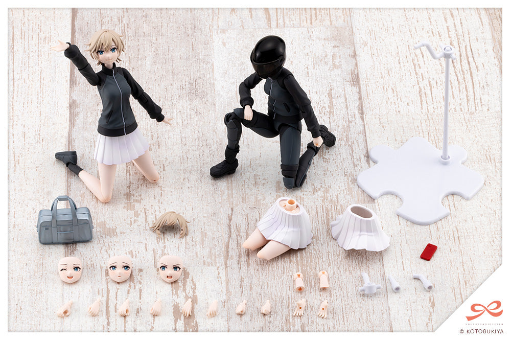 The body features thigh rotation joints and double-jointed knees, making it ideal for action poses. When combined with the forward-leaning upper body and full-face helmet, a complete riding configuration can be assembled. Both the school uniform body and riding body can be enjoyed in one set.