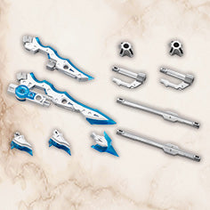 ■ The set is pre-painted in three colors – luxurious for an M.S.G. The blades are clear sky blue, the body pieces are white, and the frames are silver, coming together for a cohesive look when fully assembled.