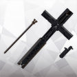 Grave Arms2 is a combination weapon resembling a cross. While the primary weapon is a giant cannon, it also acts as a large sheath for a laser blade and dual handguns. In addition to transforming into a large sword, the grip can be removed attached to the included effect parts to create a deadly laser blade sure to liven up any heroic action scene. The weapon can also be mounted to various places using the articulated mounting arm.